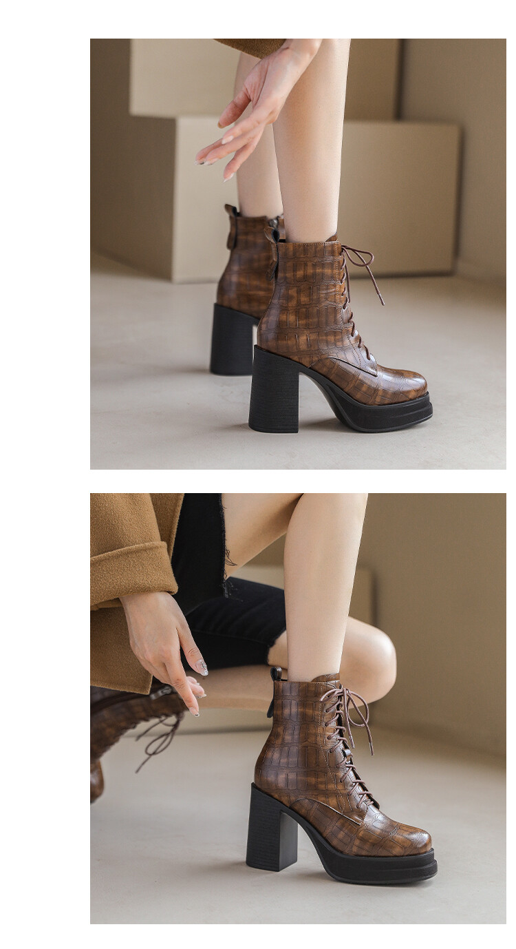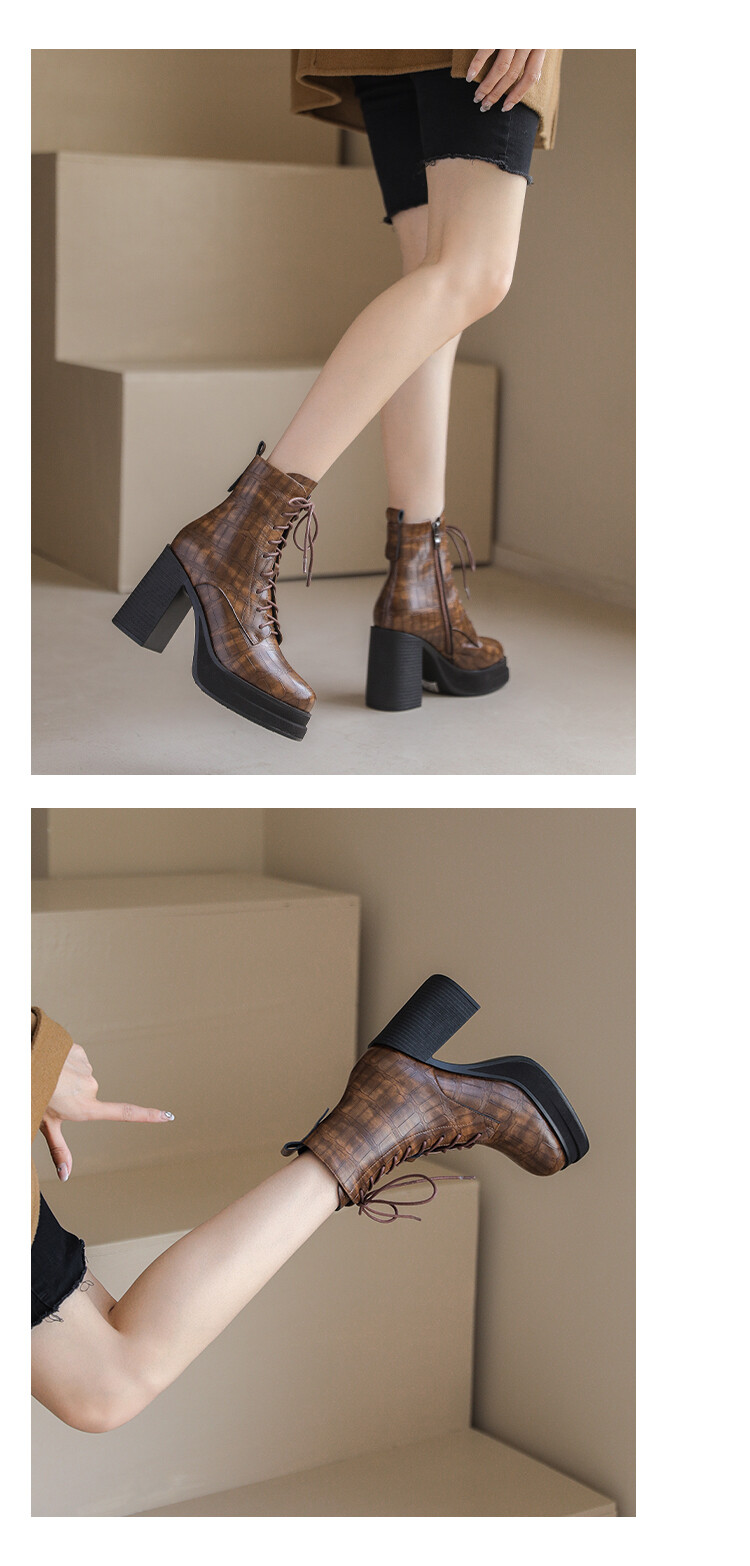 Featuring a retro high-heeled design, these boots are perfect for a night out on the town or for adding some height to your everyday look. The side zipper closure makes them easy to slip on and off, while the round toe and thick heel provide stability and support.