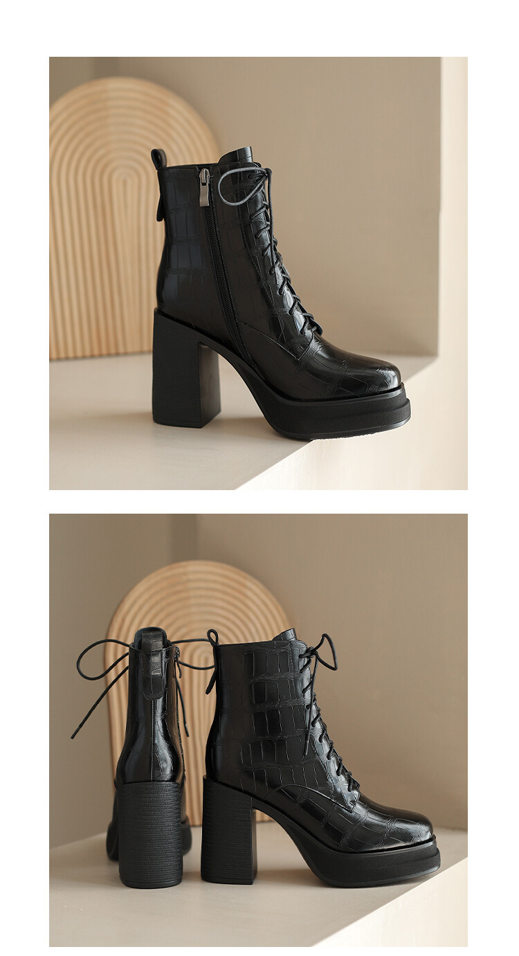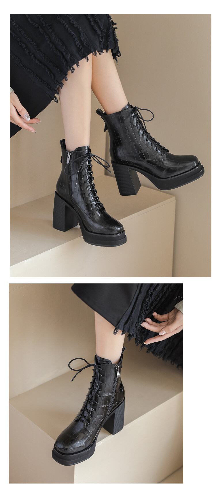 Step up your style game this winter with our New Round Toe Full Leather Short Boots! These boots are designed for women who value both comfort and fashion. With a thick-soled and waterproof platform, these boots will keep your feet warm and dry during the cold, wet winter months.
